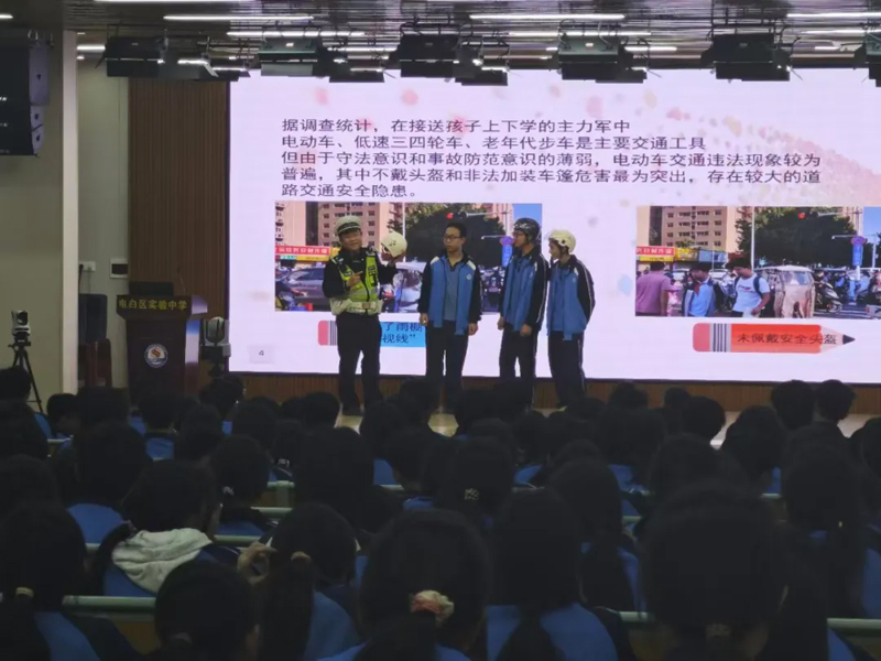 民警紧扣学生骑车出行实际,运用真实案例、直观数据和轻松易懂的语言,讲解违规骑行的隐患与后果,并重点提醒:正确佩戴安全头盔、严格遵守驾驶年龄规定,牢牢守住安全底线!