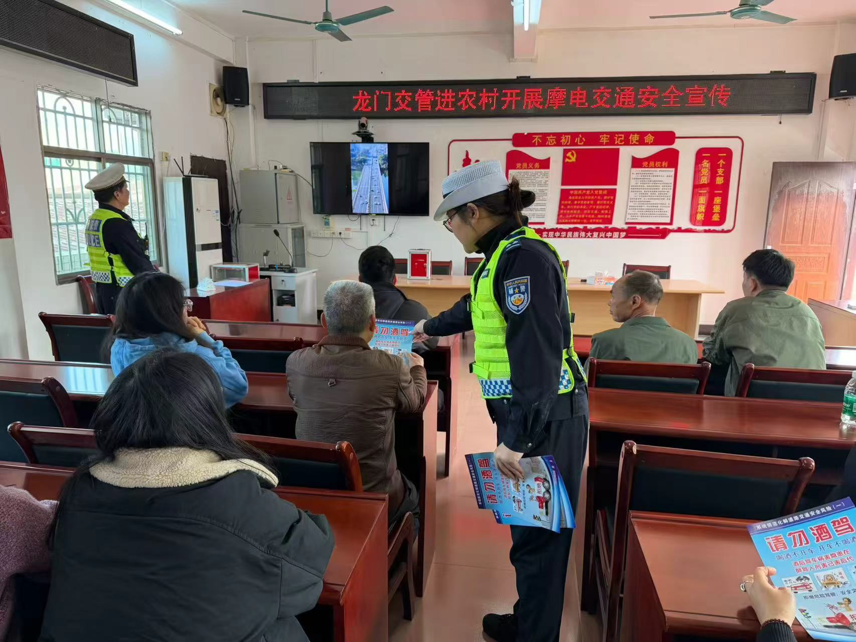 1月27日上午,惠州市龙门县公安局交管大队深入平陵街道光镇村委会,开展了一场面向电动自行车、摩托车驾驶人的交通安全宣传活动。
